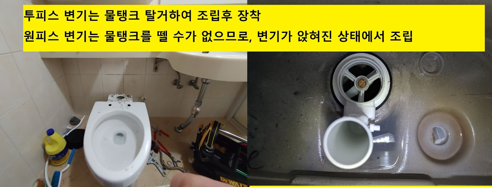 준비물 : 작은 몽키 두자루, 양변기부속 전용공구 (인터넷에서 구매-배수마개 끼울때 필요함)