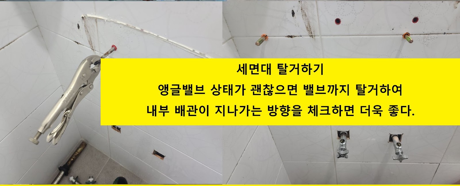 여기서 한가지 주의사항은, 배관라인을 체크하려면 세면대 앵글밸브를 분해해야