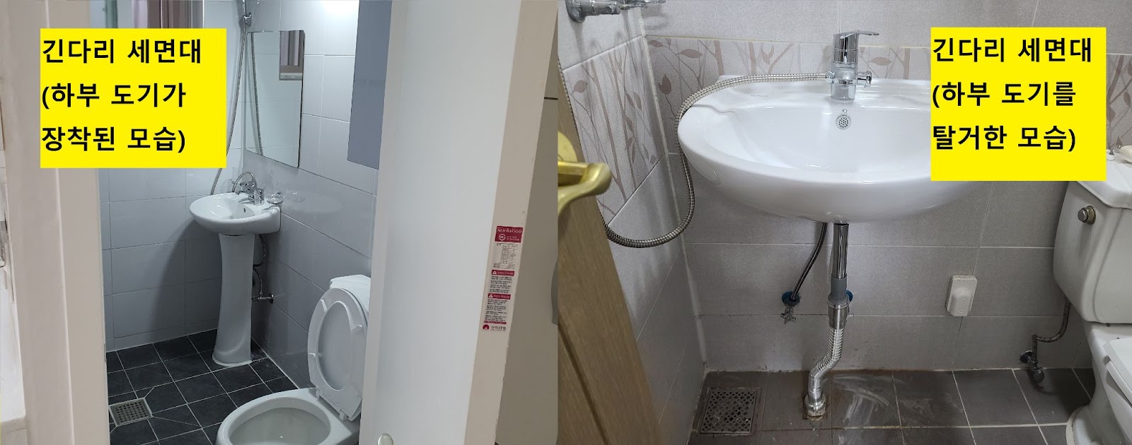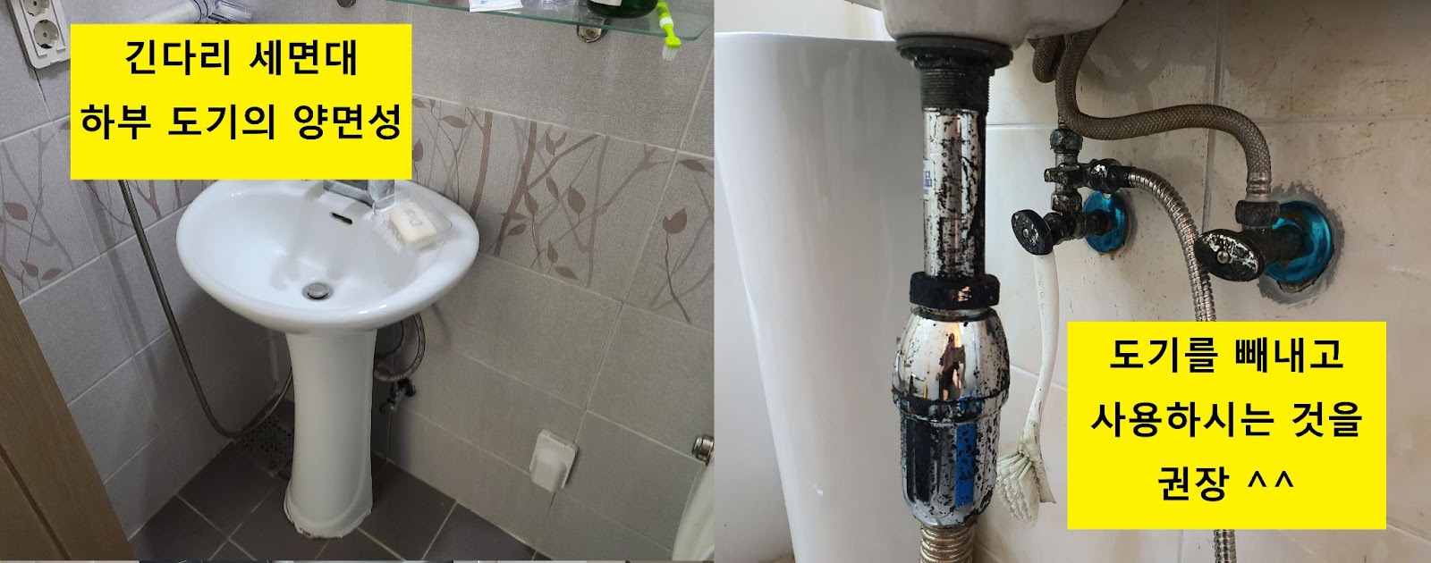 긴다리세면대가 설치된 곳이라 하더라도, 가능하면 하부 도기는 빼는게 낫다고 생각.
