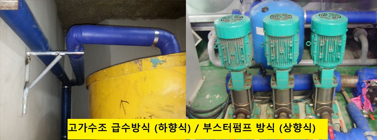 요즘에 지어진 대부분의 건축물들은 대형빌딩이나 아파트 기준으로 상향공급방식으로 바뀌었다.