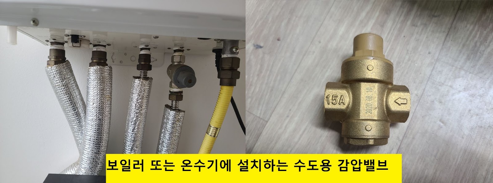 전부 다 조였는데도 수압이 올라가지 않을 경우, 감압밸브의 고장으로 판단되니 교체작업을 진행하면 된다.,