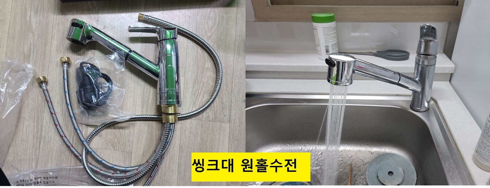 싱크대 원홀수전은 상황에 따라 조금 빡센 작업이 될 수 있다.