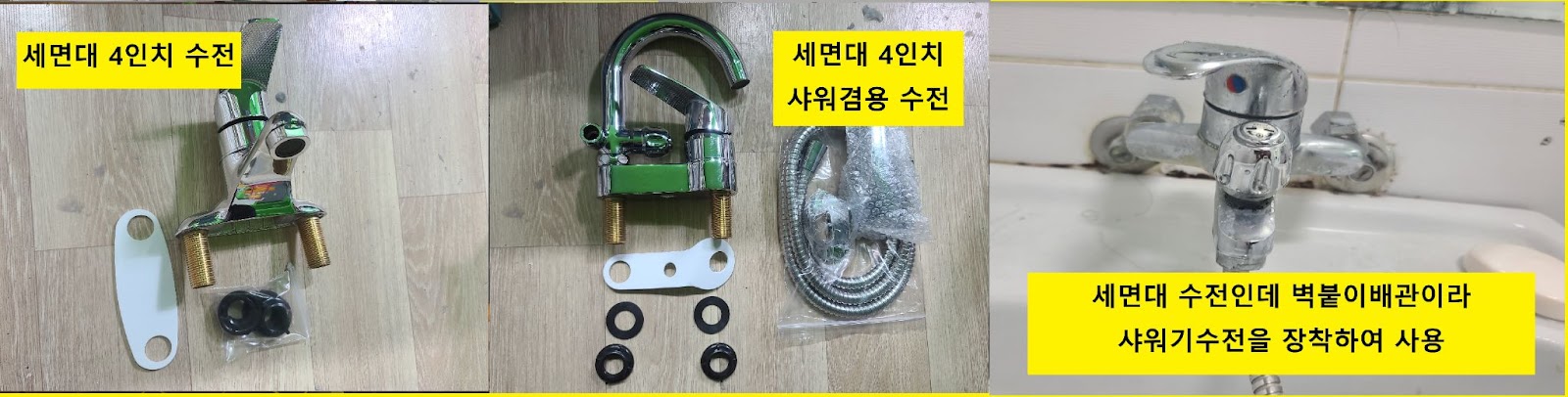 만약, 우리집 세면대를 봤을때 수전이 벽에 붙어있는 경우는 일반 세면대수전이 아니라, 벽붙이 샤워수전을 사용해야 한다 (아주 옛날 방식)