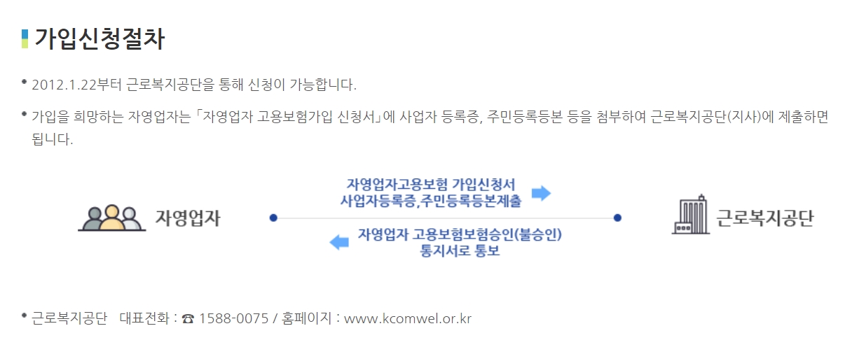 준비서류 : 자영업자 고용보험가입신청서, 사업자등록증, 주민등록등본