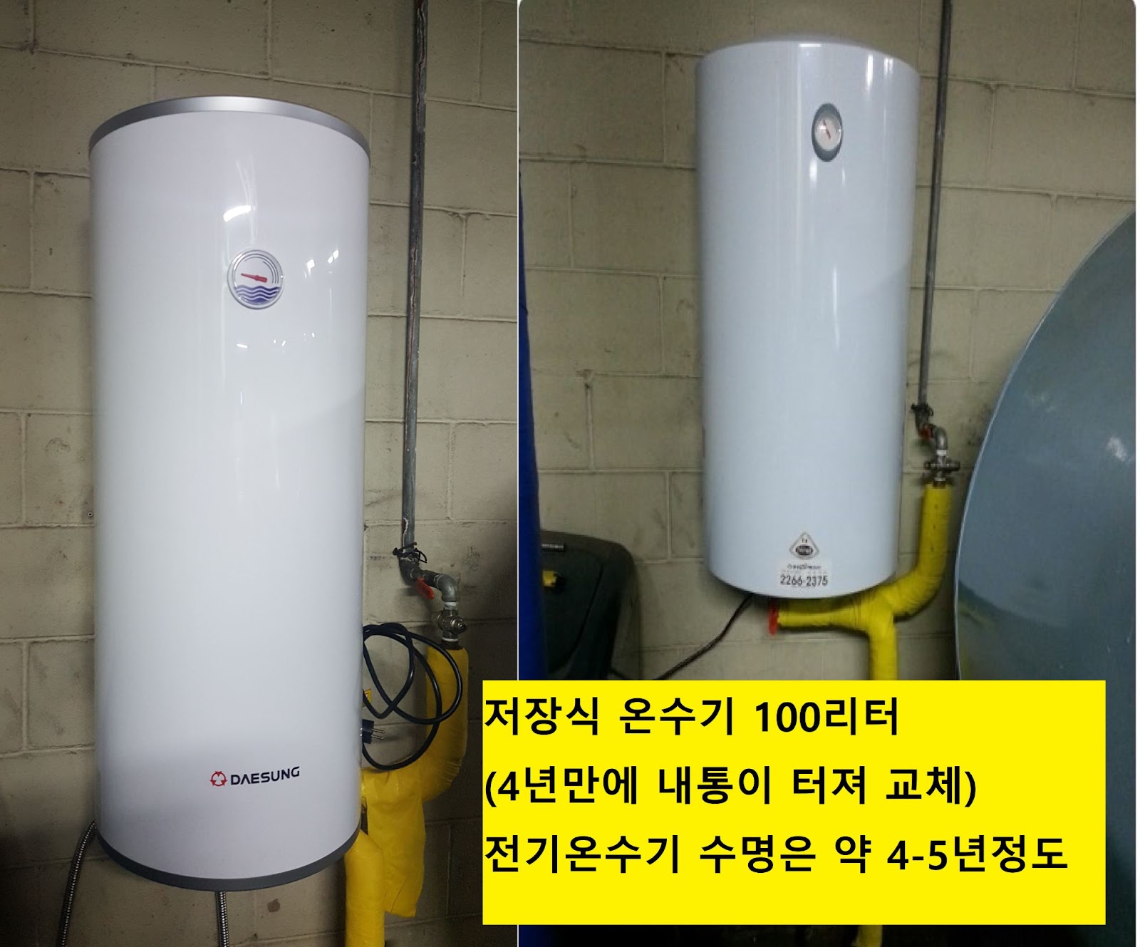 전기온수기의 내통이 터져서 교체한 현장들 보면 대부분 4-5년이 지난 온수기였다.